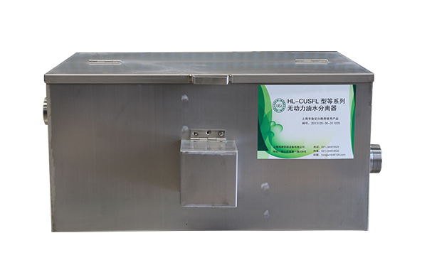 鸿来公司研发的HL-CUSFL等系列无动力油水分离技术产品,其工作原理为重力油水分离法。这是利用了油和水的比重差,将二者进行自然分离。其工作流程为先以强制式手断控制水流水平流速,促进提高静水效率,油水分离也就是将水体保持在最平静态势下,使水体达到净化最高效率,使油水分离效果达到最好。即使当在工业含油污水大量的排放情况下,根据情况配置一个调节池或者储水罐或多个并联使用隔油池,即可缓介和达到效果。为此,我公司组织科研技术人员进行技术攻关,经反复试验,大胆实践,研制出了新一代适合国内餐饮业的无动力油水分离器,使之彻底实现了无须用电,只需定期排油或捞油即可,因而节省投资,减少了运转费用与维护费用,特别适用于饮食业及学校、食堂、机关等事业单位、油脂及杂质含量高的场所。